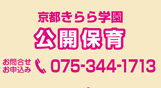 京都きらら学園、及び京都幼児教室の資料請求ならびにお問合せは、この問合せフォームからお寄せ下さい。または、ページ最下部(フッター)に記載している連絡先(お電話・FAX・Email等)からの資料請求・お問合せも受付けております。なお、お客様にご記入いただきました個人情報につきましては、当園で責任をもって管理し、お問合せのお返事や、それに付随するご案内の提供目的のみで使用させていただきます。第三者への開示や他の目的での使用はいたしません。